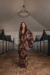 Celeste — Pre-Fall ’26 evokes the equestrian spirit of Latin America through silhouettes that balance gaucho grit and escaramuza grace. Cape-kissed sleeves, elongated tunics, and fluid dresses echo the rhythm of riding, while florals and graphic motifs nod to traditional embroidery. Rich, earthy tones unfold across linens, silks, jacquards, and embroidered georgettes, complemented by sculpted belts, natural-fiber hats, confident boots, and the season’s signature bow. Celeste is crafted for women who embody strength, elegance, and the quiet power of heritage.