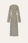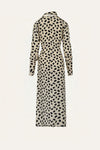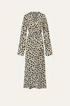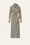 A wrap dress crafted in silk CDC, featuring an expressive animal-inspired print. Designed with full-length sleeves and a self-tie waist that allows for adjustable styling, it offers a fluid silhouette suited for spring weather.