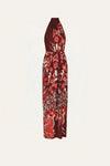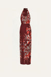 A maxi dress crafted in heavy crepe with an expressive floral print. Designed with a halter neckline and a clean, elongated silhouette. Ideal for evening occasions, styled with statement accessories from the collection.