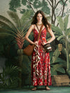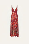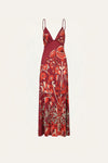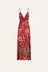 A midi dress crafted in shiny jersey with an expressive floral print. Designed with delicate straps and a fluid slip-on silhouette. Perfect for daytime occasions, styled with flat sandals and accessories from the collection.