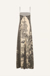 A statement maxi dress crafted in heavy crepe, adorned with intricate embroidery that brings Johanna Ortiz’s signature tropical motifs to life. Designed with a straight neckline and fluid drape, it’s a standout piece for any occasion.