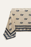Elevate your dining with a durable cotton tablecloth featuring charming mushroom block prints in three shades, inspired by JO's archival designs. Crafted from sustainable fabrics sourced from traceable mills, it brings JO Home's distinctive elegance to any occasion.