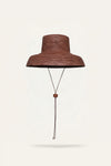 A wide-brim hat crafted in paja toquilla, finished in a deep brown tone. Designed with a structured crown and an adjustable chin strap, it offers a refined yet relaxed touch—perfect for spring days and sun-filled escapes.