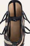 A statement tote handcrafted from iraca palm and leather, combining artisanal texture with a bold, graphic pattern. Designed as a functional yet expressive piece, it reflects the collection’s spirit of adventure and appreciation for handcrafted techniques. An essential carryall that brings character and authenticity to everyday looks.