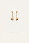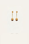 Sculptural drop earrings crafted in brass with handwoven iraca palm detailing in warm brown tones. Designed to bring movement and rhythm to the silhouette, they balance artisanal craftsmanship with expressive presence. Style them as a statement accent to elevate both daytime and evening looks.