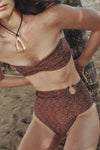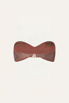 A bikini top designed with a bandeau silhouette and twist-front detail. Ideal for sunbathing and poolside moments. Style it with the matching bottom or layered under an open shirt.