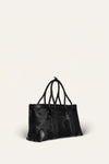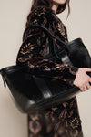 Spacious and structured, this tote is designed for everyday rituals. Crafted in deep black with contrasting textures, it brings an edge of quiet power to any look. Ideal for layered winter dressing and daily transitions.