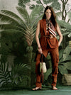 Straight-leg leather trousers crafted in supple suede, featuring cargo pockets. Designed to balance structure and utility, they reflect the spirit of adventure central to the Magdalena collection. Style them with the matching vest for a coordinated look or pair them with fluid tops for elevated daytime dressing.