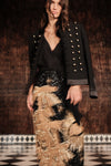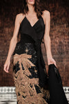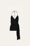 Wrap top in silk designed with a deep V-neckline and delicate embroidered tassels at the tie. A versatile piece to wear with several bottoms from the collection.