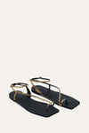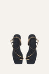 Minimalist sandals crafted from cow leather, designed with delicate wraparound straps and a sculptural square toe. A tribute to Johanna Ortiz’s signature barefoot aesthetic, they seamlessly transition from day to night, complementing both casual and refined looks.