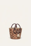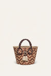 This mini bag is crafted by Colombian artisans using natural Tetera palm, showcasing a striking geometric pattern that highlights their expert weaving techniques. The silk-wrapped handles and tassel details enhance the design. This piece is a standout accessory, sure to make a statement.