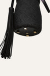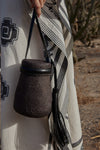 A reinvented mini crossbody, "Palacio de Jaipur," crafted with a chic leather tassel charm that can be worn or removed. This versatile accessory transitions smoothly from casual to elevated styles, making it the perfect addition to any outfit.