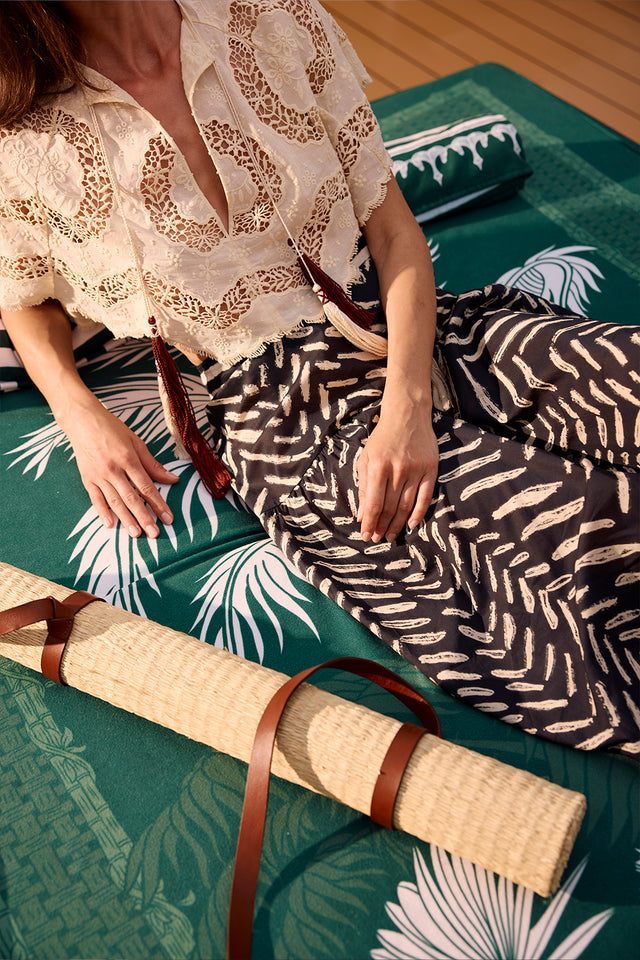 The takeover is anchored by Tropical Exuberance, Johanna Ortiz’s custom print inspired by the expressive abundance of Caribbean flora and the landscapes that shaped her early years. Interwoven with the brand’s signature rope knot motif, the design reflects a lifestyle rooted in movement, enjoyment, and connection to nature.