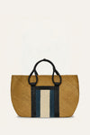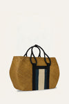 A beach bag crafted in iraca palm with leather accents, designed with a spacious silhouette to carry everything needed for a day by the sea.