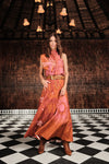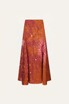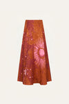 Ankle-length skirt in printed jacquard featuring sun and palm motifs. Designed with a high-waisted silhouette and a flared shape that moves gracefully with each step. Pair with the matching top for a coordinated look.