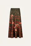 Ankle-length skirt in printed jacquard featuring sun and palm motifs. Designed with a high-waisted silhouette and a flared shape that moves gracefully with each step. Pair with the matching top for a coordinated look.