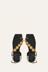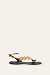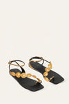 Strappy flats reimagined with glossy acrylic beads and sculptural concho medallions. Infused with a festive spirit, they’re designed for everyday wear.