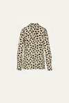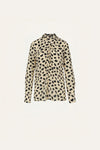 A silk CDC blouse featuring an expressive animal print, designed with a softly gathered neckline and a tie at the back that creates a subtle knot detail. Fluid and lightweight, it is ideal for spring styling and pairs effortlessly with tailored pants or flowing matching pieces for a polished yet relaxed JO look.