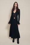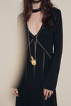 Emerging from dusk, she is a radiant vision—mysterious, elegant, and untamed. CANDELARIA transcends time, weaving magic and fortune into luminous textures. Each piece invites self-discovery, where elegance and mystery intertwine.