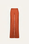 High-waisted pants crafted from textured jacquard featuring a subtle palm motif. Designed with a wide-leg silhouette that moves beautifully, they can be paired with the matching top for a coordinated look.