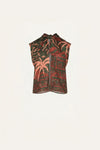 A sleeveless top cut in printed jacquard featuring one of Johanna Ortiz’s signature landscape motifs. Designed with a boxy silhouette, it can be styled with the matching skirt for a coordinated look or paired with denim for an effortlessly relaxed feel.