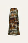 A maxi skirt crafted in silk double georgette, featuring a fluid, expressive print in pine green and chocolate tones. Designed with a soft, elongated silhouette that falls effortlessly, it highlights the lightness and movement of the fabric. Perfect for daytime styling, paired with the matching top or styled with fluid blouses for a fresh JO look.