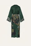 A wrap dress crafted in printed jacquard, featuring a rich botanical motif in deep green tones. Designed with long sleeves and a fluid silhouette that wraps gracefully at the waist, it highlights the artwork of the fabric while offering versatility in styling. Pair it with accessories from the collection for a cohesive JO look.