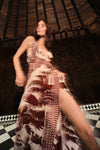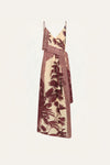 A silk wrap dress featuring one of Johanna Ortiz’s signature tropical prints. Defined by its fluid silhouette and soft drape, it’s an effortless piece that transitions beautifully from day to evening.