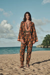 Pants featuring a JO print, designed with an elasticated waist and gathered cuffs at the hem. Perfect for warm-weather dressing and relaxed day-to-evening looks. Style them with the matching top or a lightweight shirt.