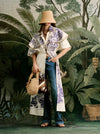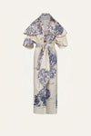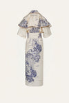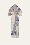 A long cotton trench featuring a graphic toile print and a sculptural cape detail. Designed with a fluid silhouette and subtle volume, it brings an expressive yet effortless presence to the collection, ideal for spring weather.