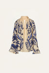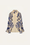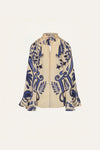 Silk blouse featuring voluminous sleeves and a relaxed, fluid shape that drapes beautifully. Designed for ease and sophistication, it pairs perfectly with the matching skirt from the collection for a coordinated look.