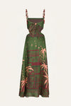 An ankle-length dress crafted from embroidered linen, detailed with embroidered tassels that add movement and texture. Featuring a structured bodice with subtle cutouts and a flowing skirt, it’s a refined option for daytime gatherings or warm-weather occasions.
