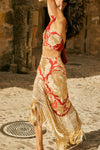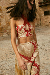 A print infused with a delicate feminine touch courtesy of Las Flores Andaluzas. Featuring an elegant construction of outlines at the neck and back, this crop top is an ode to spring.