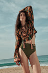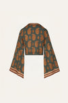 A top featuring a JO print, designed with a cropped silhouette, wide sleeves, and front ties with tassel details. Ideal for warm-weather dressing and expressive day-to-evening looks. Style it with matching pants or skirts from the collection.