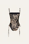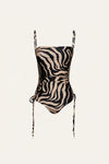 An iconic body-core silhouette reimagined this season in fresh prints and colors, detailed with embroidered tassels. Designed with adjustable side ties, this versatile piece pairs effortlessly with playful pareos and skirts from the collection.