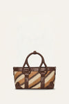 A mini tote bag crafted in handwoven iraca palm and cow leather, featuring a structured silhouette with artisanal detailing. Designed with an open top and button loop fastening, it balances natural texture with refined construction. Compact and versatile, it is intended for effortless daytime wear, accompanying the modern explorer through each moment of her journey.