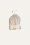 A halter top crafted in textured jacquard with a subtle palm motif. Designed for a relaxed fit, it pairs perfectly with the matching pants for a coordinated look or can be styled with denim for a more casual approach.