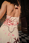 A halter top cut in lightweight linen showcasing one of Johanna Ortiz’s signature architectural prints. Designed for effortless styling, it can be paired with the matching skirt for a coordinated look or styled with tailored pants for a refined touch.