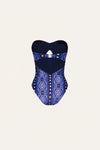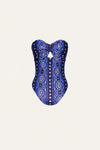 A strapless one-piece swimsuit with a heart-shaped neckline and subtle front cutout. Defined by clean lines and soft ruching at the sides, it combines ease and sophistication for a statement swimwear piece.