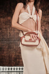 Crafted from handwoven iraca fiber with smooth cow leather trims, this structured mini bag blends artisanal craftsmanship with functional design. The removable strap and coiled leather handle allow versatile styling—from crossbody to handheld—while the magnetic front flap ensures effortless closure.