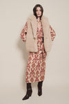 Crafted from plush shearling, this vest features a textured toggle closure and printed lining. Layer it over shirts, dresses, or knits to add structure and contrast.